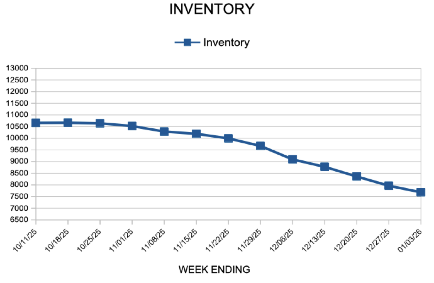 - Inventory decreased 2.6% to 7,683